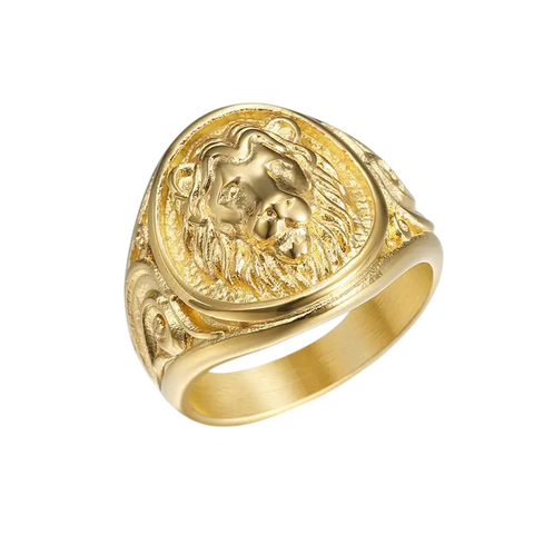 Ringen visar upp mäktiga karveringar och mönster, med ett lejon som huvudmotiv. En ring för alla som söker efter en gedigen guldring, och utgör en fantastisk present. Ringen kan bäras på alla fingrar, även tummen. Bär ringen och väck den vilande förbannelsen inom den som kommer ge dig både respekt och fruktan!