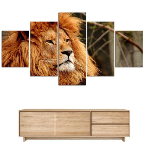 Tavlan finns i fyra olika storlekar och kan sättas upp i hallen, vardagsrummet, sovrummet etc. Canvastavlan kommer i fem delar och visar upp ett lejon, och framhäver den som den kung lejonet är!