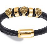 Armbandet består av tre stycken lejonhuvuden, och kommer ge dig en stil som kommer skrämma slag på alla lokala hyenor! Läderarmbandet passar alla som älskar lejon och bär upp en casual stil lika bra som en mer uppklädd sådan!